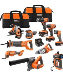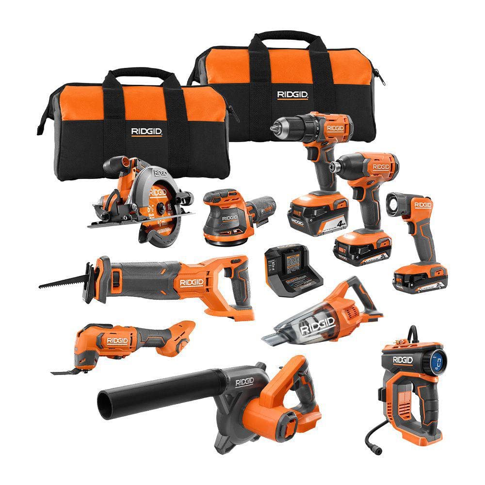 Ridgid 18V Cordless 10-Tool Combo Kit with (2) 2.0 Ah Battery, (1) 4.0 Ah Battery, Charger, and Bag R96259N