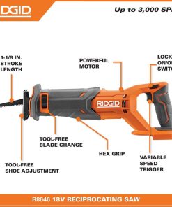 Ridgid 18V Cordless Reciprocating Saw with (2) 4.0 Ah Batteries, 18V Charger, and Bag R8646B-AC93044SBN
