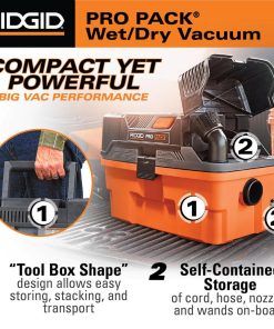 Ridgid 4.5 Gallon 5.0 Peak HP ProPack Wet/Dry Shop Vacuum with Fine Dust Filter, Expandable Locking Hose and Accessories WD4522