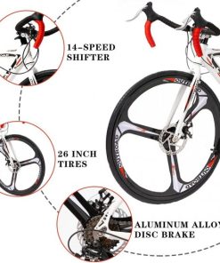 - 【14 SPEED ROAD BIKE】 Allow you to switch through the gears very quickly with your finger tips, so you can quickly select a gear for every terrain. Enjoy different speed cycling experience, like a wind chaser.