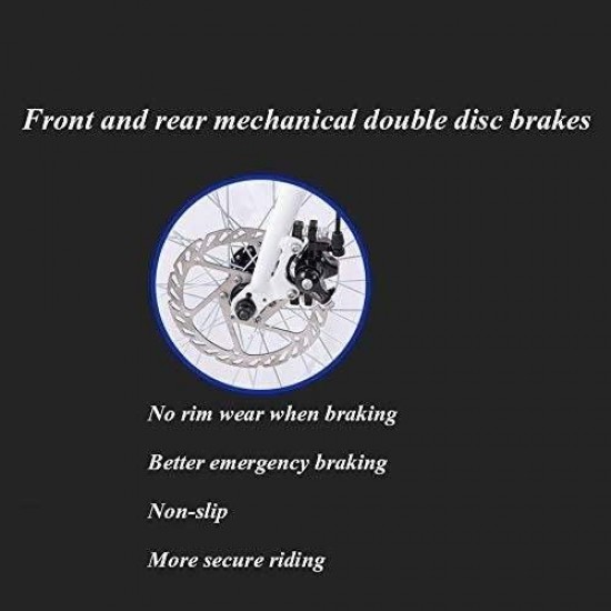 - ★Front and rear mechanical double disc brakes: the front and rear of the disc brakes are equipped with brakes like motorcycles, which will not wear the wheel ring when braking, and emergency braking is better, without sideslip, and riding is safer.