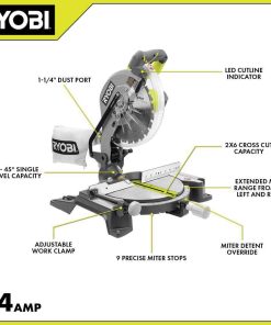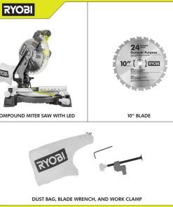 RYOBI introduces the 10 in. Compound Miter Saw with LED. The heavy duty 14 Amp motor delivers up to 5£¬500 RPM for the power to make difficult cuts. It features a 1-1/4 in. dust port to help keep your work area clean. The 24-tooth Carbide-Tipped blade provides improved performance for fast£¬ clean cuts and an LED Cutline Indicator for higher accuracy. Backed by the RYOBI 3-Year Manufacturer’s Warranty£¬ the 10 in. Compound Miter Saw with LED includes a 24-tooth Carbide Tipped Blade£¬ a blade wrench£¬ a dust bag£¬ a work clamp£¬ and an operator’s manual.