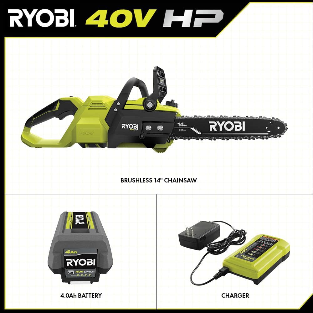 Includes RYOBI 40V 4Ah lithium-ion battery and charger