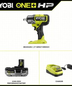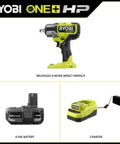 RYOBI ONE+ HP 18V Brushless Cordless 4-Mode 1/2 in. Impact Wrench Kit w/ 4.0 Ah HIGH PERFORMANCE Lithium-Ion Battery & Charger P262K1