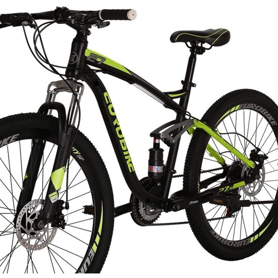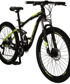 - The full suspension frame brings you a more comfortable riding experience on rugged mountain roads, 21 speed gear system is easy to operate. Dual disc brakes provide you with more effective braking and braking effect.