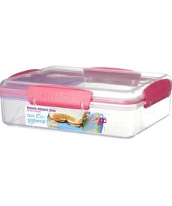 The product is available the follow colours, , , . Please lude the colours reference the coent box when proceed to checkout.If the product colour is not specified, this will be chosen at romOne piece per price5 assorted colours to choose from, please check stock of prefer colour prior to order.Capacity 975mlThe Sistema Snack Attack Duo To GoTM is perfect for tak your lunch snacks on the go. Simply place your food o the contar close the disttive Sistema easy-lock clips to seal.The Sistema Snack Attack Duo To GoTM features three ernal compartments to keep your snacks separate until ready to eat. With the easy-lock clips pl flexible seal, your food stays fresher for longer. Stackable safe to e the Dishwasher (top rack), Microwave (without lid), Fridge & zer. Zeal.Phthalate & BPA .Dishwasher safe, Top rack onlyzer safeMicrowave safe