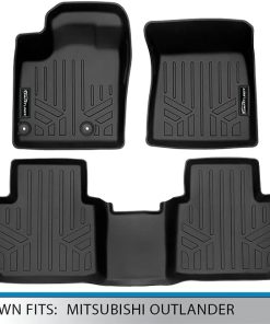 SMARTLINER Custom Fit Floor Mats 2 Row Liner Set Black Compatible With 2022 Mitsubishi Outlander