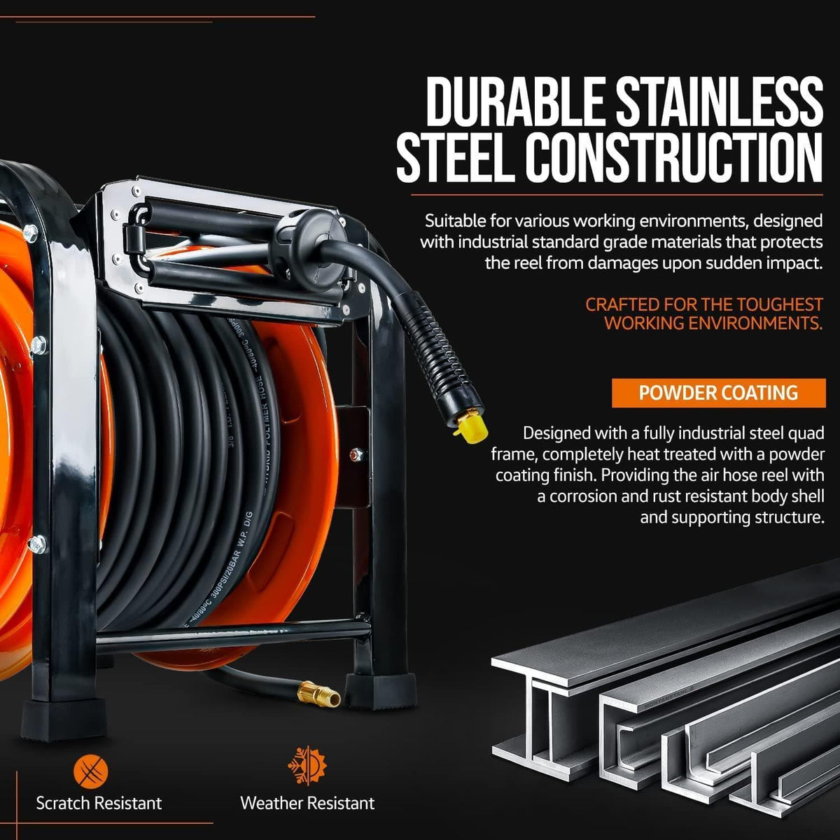 SuperHandy Portable Industrial Retractable Air Hose Reel – 3/8