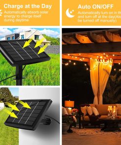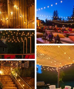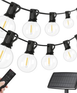 SZRSTH Solar Outdoor String Lights, 50FT Patio Decor Lights with Remote 25 Shatterproof LED Bulbs Waterproof Hanging Lights for Backyard Porch Party Garden Wedding