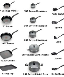 T-fal Easy Care Nonstick Cookware, 20 Piece Set, Grey, Dishwasher Safe