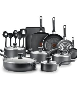 T-fal Easy Care Nonstick Cookware, 20 Piece Set, Grey, Dishwasher Safe