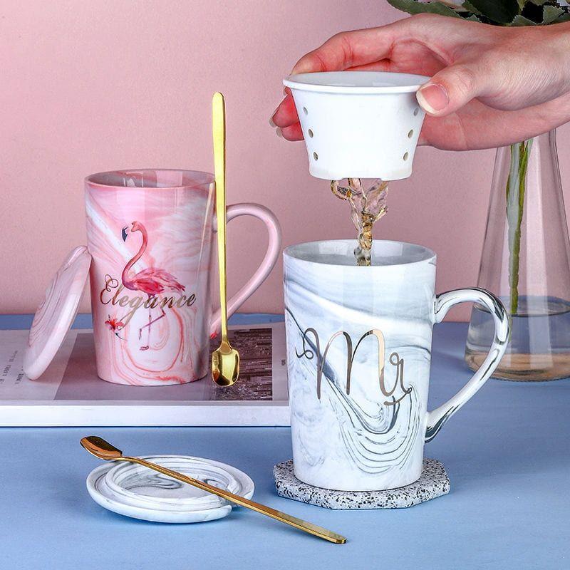 Tea Milk Water Coffee Use Cup / White Black Green Color / Real 18 K Gold Letter??Shinny Bling??With Spoon/Cover/Tea Leak Ceramics 380ml Mug Cup Sets