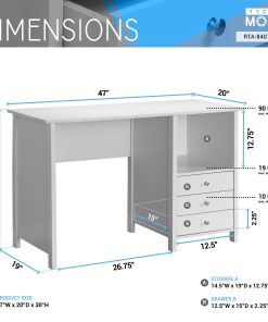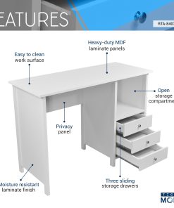 Add style and function to any home or office with the Techni Mobili Contempo Desk. It has three spacious drawers that provide plenty of storage£¬ as well as an open shelf area that is ideal for holding books£¬ decorative or personal accessories. This simple and modern white home office desk has clean lines that blend flawlessly with existing furniture and decor. This desk incorporates heavy-duty engineered wood panels with a crisp white moisture-resistant paper laminate finish. Easy to follow instructions with step-by-step details ensure a stress-free assembly. The large opening fits a variety of desk and task chairs£¬ from rolling office chairs to traditional wooden or upholstered styles. See the Assembly Instructions Here! About RTA Home and Office Founded in 2002 in South Florida£¬ RTA Products LLC designs manufacture£¬ and distributes affordable£¬ high-quality£¬ functional furniture for homes and offices under the Techni Mobili brand. Customer satisfaction has always been RTA’s top priority.