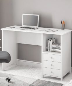 Add style and function to any home or office with the Techni Mobili Contempo Desk. It has three spacious drawers that provide plenty of storage£¬ as well as an open shelf area that is ideal for holding books£¬ decorative or personal accessories. This simple and modern white home office desk has clean lines that blend flawlessly with existing furniture and decor. This desk incorporates heavy-duty engineered wood panels with a crisp white moisture-resistant paper laminate finish. Easy to follow instructions with step-by-step details ensure a stress-free assembly. The large opening fits a variety of desk and task chairs£¬ from rolling office chairs to traditional wooden or upholstered styles. See the Assembly Instructions Here! About RTA Home and Office Founded in 2002 in South Florida£¬ RTA Products LLC designs manufacture£¬ and distributes affordable£¬ high-quality£¬ functional furniture for homes and offices under the Techni Mobili brand. Customer satisfaction has always been RTA’s top priority.