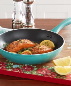 Bring the joy of Ree’s ranch to your home with The Pioneer Woman Timeless Beauty Teal 10-Inch Frying Pan. Whether you’re making cheesy scrambled eggs£¬ stir-frying tasty veggies or searing a prime cut of meat£¬ this skillet performs under pressure with a pinch of Ree’s Signature country style. Made from durable aluminum with a brilliant colored exterior that resists stains£¬ this frying pan features a long-lasting nonstick for easy food release and quick cleanup. Double-riveted handles with soft-touch coating provide a comfortable and heat-resistant grip. Aluminum is ideal for quick and even heating that will deliver consistent and delicious cooking results. Available in a wide spectrum of colors£¬ this versatile frying pan will enhance your cooking and prep experience with ease-of-use and classic style. Pairs perfectly with other pieces in the Pioneer Woman Collection£¬ this kitchen staple is made for mixing and matching to create vibrant assortments in your kitchen or on your open shelves. For no-fuss nonstick cooking that slides out of the pan and into your mouth£¬ add The Pioneer Woman Timeless Beauty Teal 10-Inch Frying Pan.