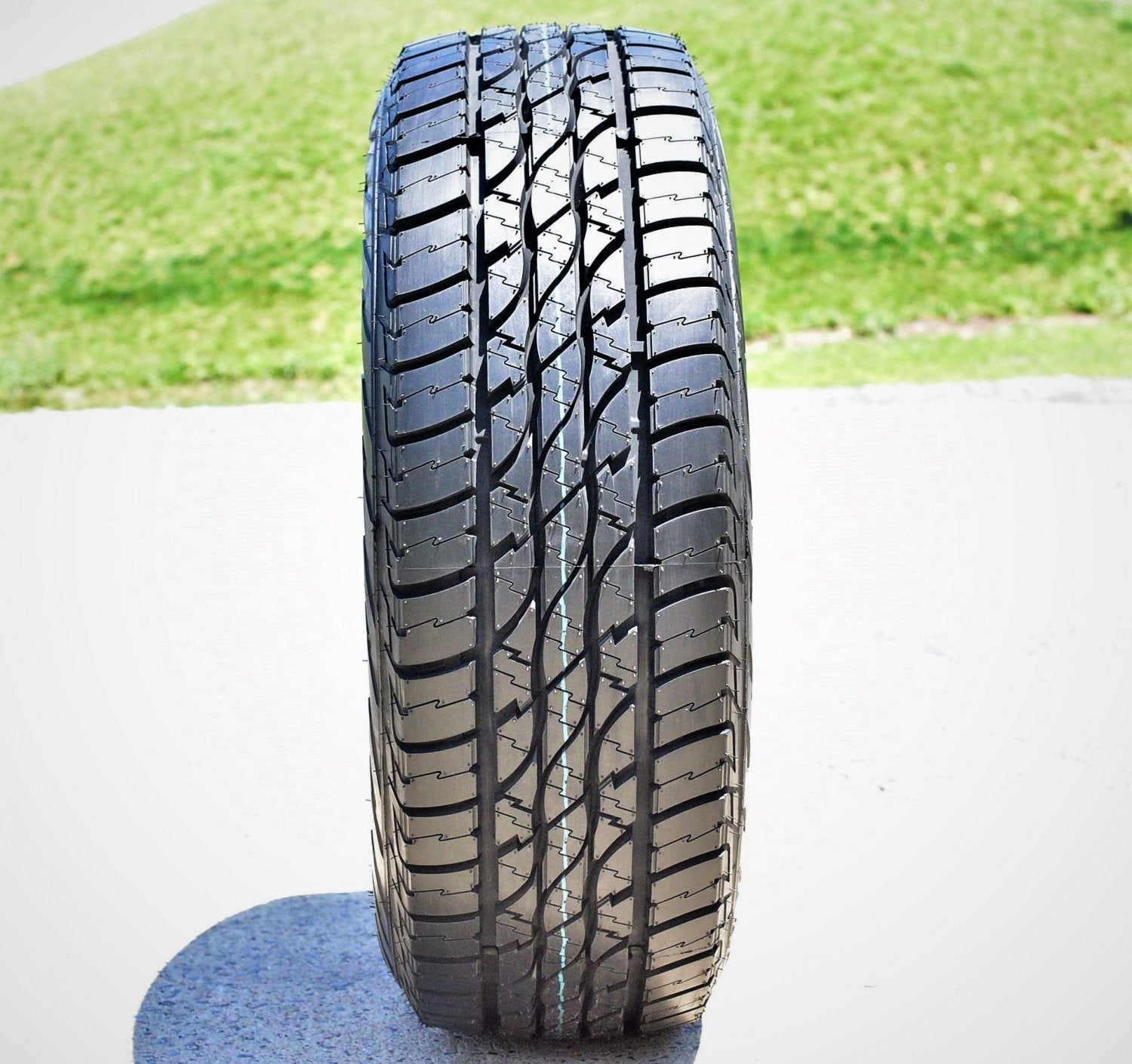 Accelera Omikron A/T – The Accelera Omikron A/T is an all terrain£¬ all season tire manufactured for SUVs and light trucks. Accelera offers a 45£¬000 mile warranty with this model. The tread pattern and the tire compound work together to increase the all weather traction£¬ while the tread grooves actively prevent hydroplaning. The tread blocks’ stepped edges increase the all terrain road gripping ability significantly. The model closely follows the road surface which lowers the road vibrations felt in the vehicle’s cabin. The Omikron A/T’s road contact enhances the steering and stability£¬ while the cornering ability is also boosted by the additional biting edges. All Season Tire The tread pattern and the all season tire compound ensure excellent all weather traction and road gripping ability.All Terrain Tire The block stepped edges and the Z-shaped siping design boost the all terrain road gripping and performance capabilities.Comfortable Drive The tread design’s interlocked center rib and intermediate blocks follow the road surface closely and reduce road vibrations.Cornering Ability The cornering ability and power are increased with the stepped edges of the tread blocks that provide additional biting edges.Handling The tread design maintains constant road contact and increases the steering responsiveness and driving stability at all times.Hydroplaning The two main grooves and the notched shoulders increase the hydroplaning resistance and the wet weather braking.[!weight:34!]