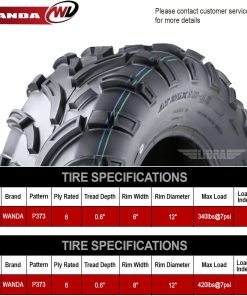 Wanda ATV/UTV Tires 25×8-12 Front and 25×10-12 Rear /6PR P373, Set 4