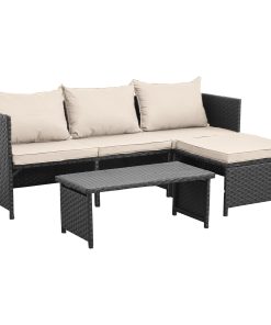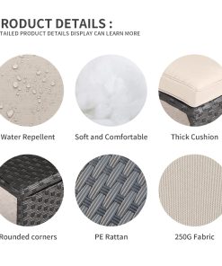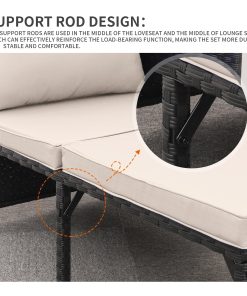 Waroom 3 Pieces Patio Conversation Sets Outdoor Wicker Furniture with Coffee Table,Khaki, Powder Coated Steel