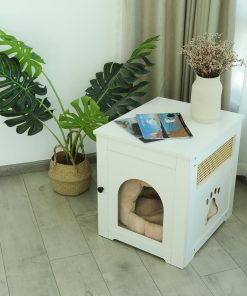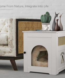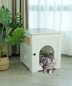 WellMall Cat Litter Box Enclosure, Cat House Side Table,Night Stand Pet House, Indoor Cat House-White