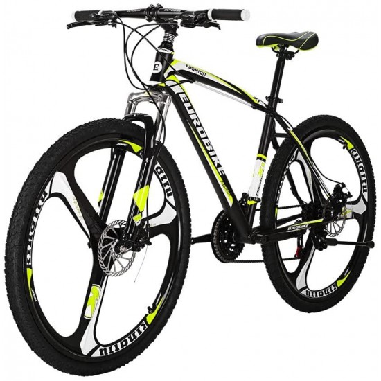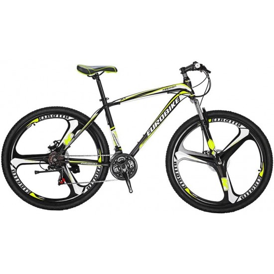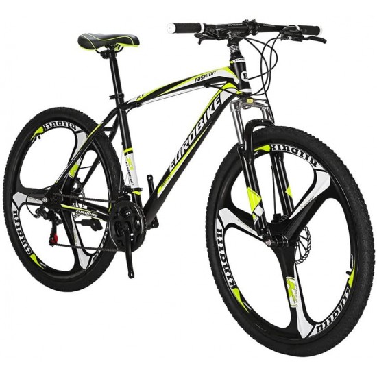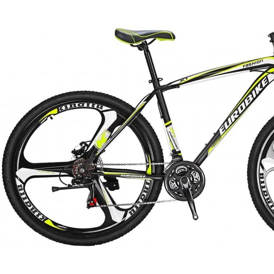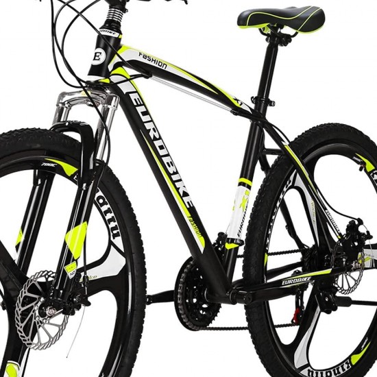 X1 27.5 Inch Adult Mountain Bike Steel Frame 3 Spoke Wheel Mechanical Disc Brake 21 Speed Gears System Front Suspension MTB Bicycle Blackyellow