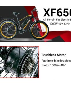XF650 1000W Electric Mountain Bike 264 inch Fat Tire e-Bike 7 Speeds Beach Cruiser Mens Sports Mountain Bike for Adults,48V 13AH Lithium Battery Beach Cruiser for Adults